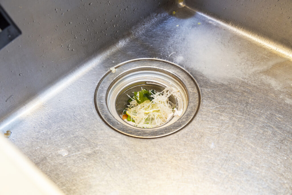 食品くずや異物による排水口のブロック