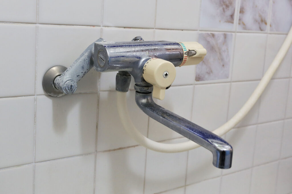 壁付きタイプは、名前の通り蛇口が壁に直接取り付けられているタイプです。壁の中に配管が埋め込まれていて、浴室やキッチンでよく見かけます。配管とクランクがネジ山で固定されているため、比較的交換作業が簡単です。